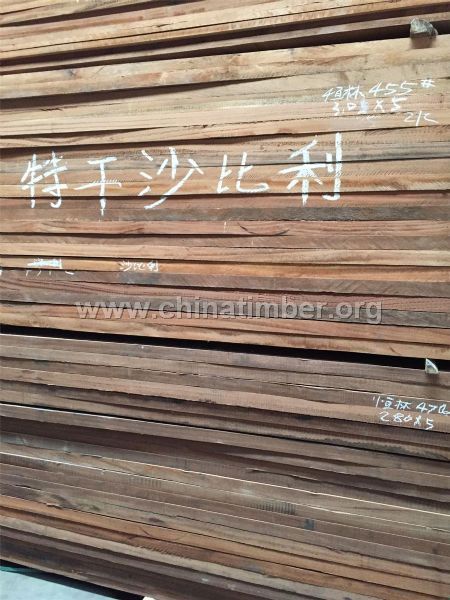 补充说明9/td> | 非洲楝,蝶形花科属,大乔木,高达20~35m,直?.8~1.3m。本?种,分布于非洲,东南亚国家及我国海南也有引种栽培。心边材区别明显,叶为偶数羽状复叶,小叶全缘,无毚椭圆形至近圆形,边有圆形膜质的翅,心材红褐色至乌檀色,常具黑褐色同乌檀色条纹,因此常被称之为非洲乌檀木。生长轮细腻不明显。光泽好。木材结构细,略均匀;强度较高;耐腐。干燥宜慢,略有端裂。气干密?.80~0.86g/cm3 |